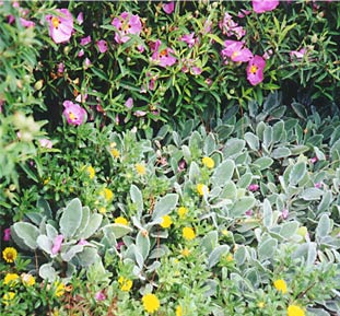 The style is chosen to suit your taste, your budget and the particular characteristics of your site. For instance, a hot dry location in full sun calls out for striking succulents amid boulders and gravel, but a site graced with Oak trees may be better suited for a classic Mediterranean style, especially favored within Santa Barbara and Montecito, because it showcases favorite drought tolerant plants. Still other properties seem just right for casual drifts of California native plants. Any of these styles can be designed as a sustainable landscape, which conserves natural resources by reducing inputs, protects the environment, and greatly reduces maintenance. |